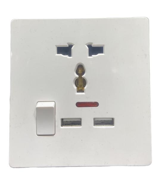 Prise murale blanche équipée d’un port USB et d’un petit interrupteur pour contrôler l’alimentation. Design pratique et moderne, idéal pour charger vos appareils facilement et en toute sécurité.